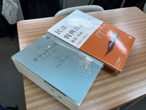 実際に講義で使用される参考書を見せていただきましたが、法学部はただ法律を学ぶのではなく、どうやって活用するのかを実践例を交えながら考えました。