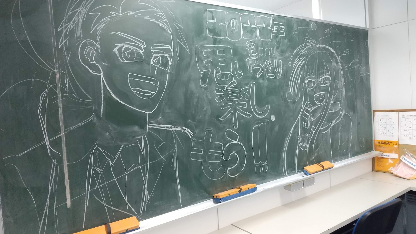 卒業生が作り上げてくれた伝統の「黒板アート」にも挑戦。