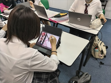 教室を覗いてみると、たくさんのパソコンが開いていました。