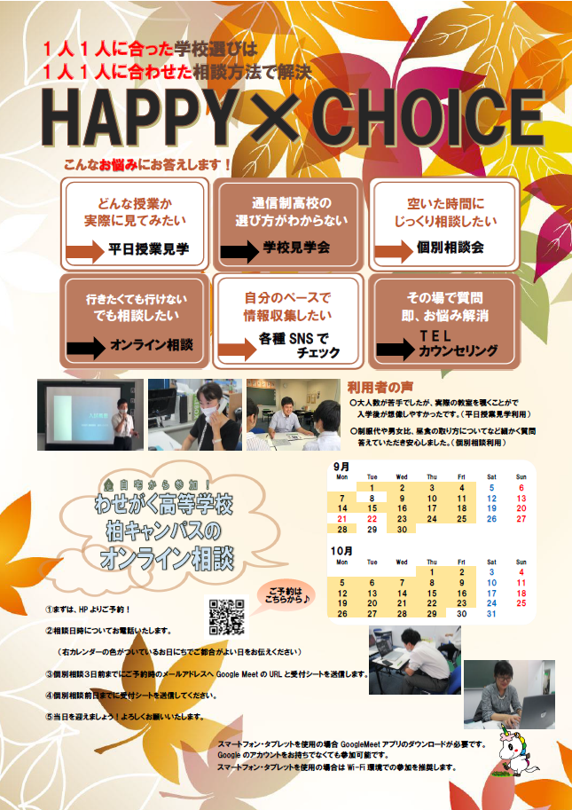 わせがく高校柏キャンパスの見学は以下の方法があります。