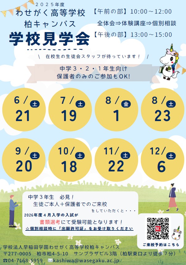 柏キャンパス 学校見学会・個別相談会日程