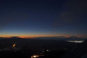 朝6時前、稜線から撮りました。星と朝焼け、夜景に富士山です。