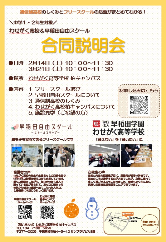 わせがく高等学校と早稲田自由スクールが、合同説明会を実施します!