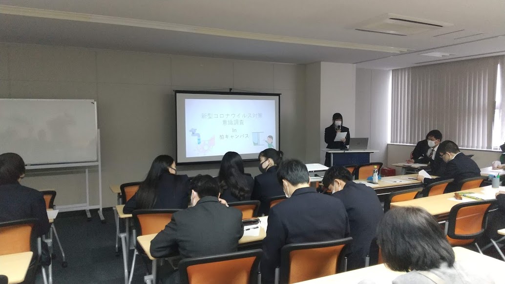 キャンパスと同じビルにある会議室で発表。いつもと違う会場での発表で生徒たちも、さらに緊張感が増したようです。
