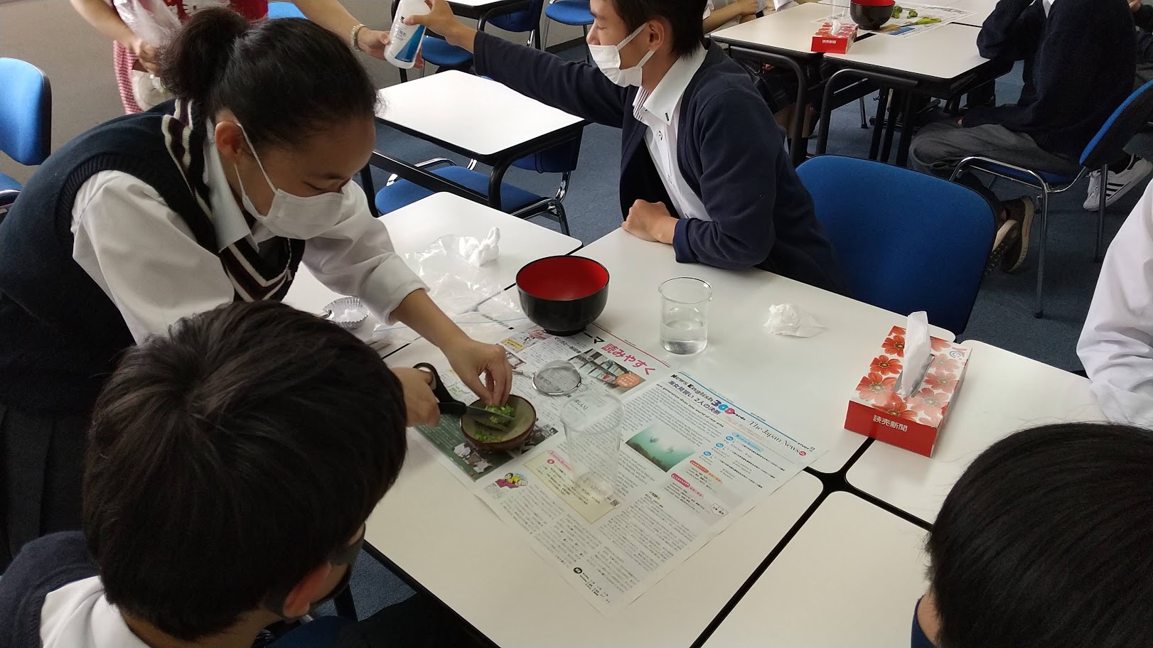 1年次の生物の授業では、ブロッコリーやオレンジジュースからDNAの抽出実験に取り組んでいました。