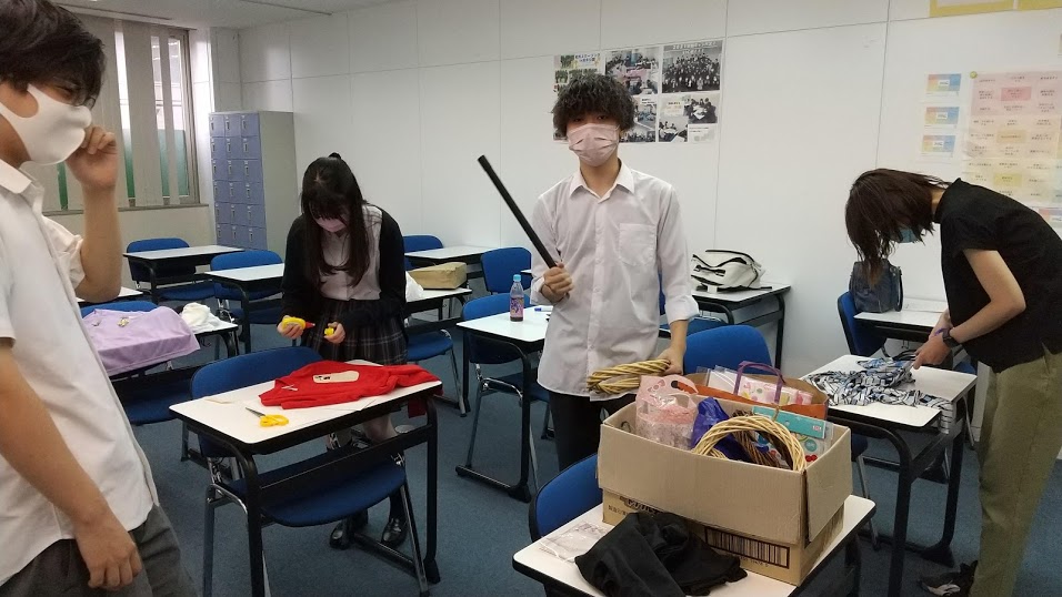 そのなかの「仮装リレー」の衣装作りに励む生徒たち。