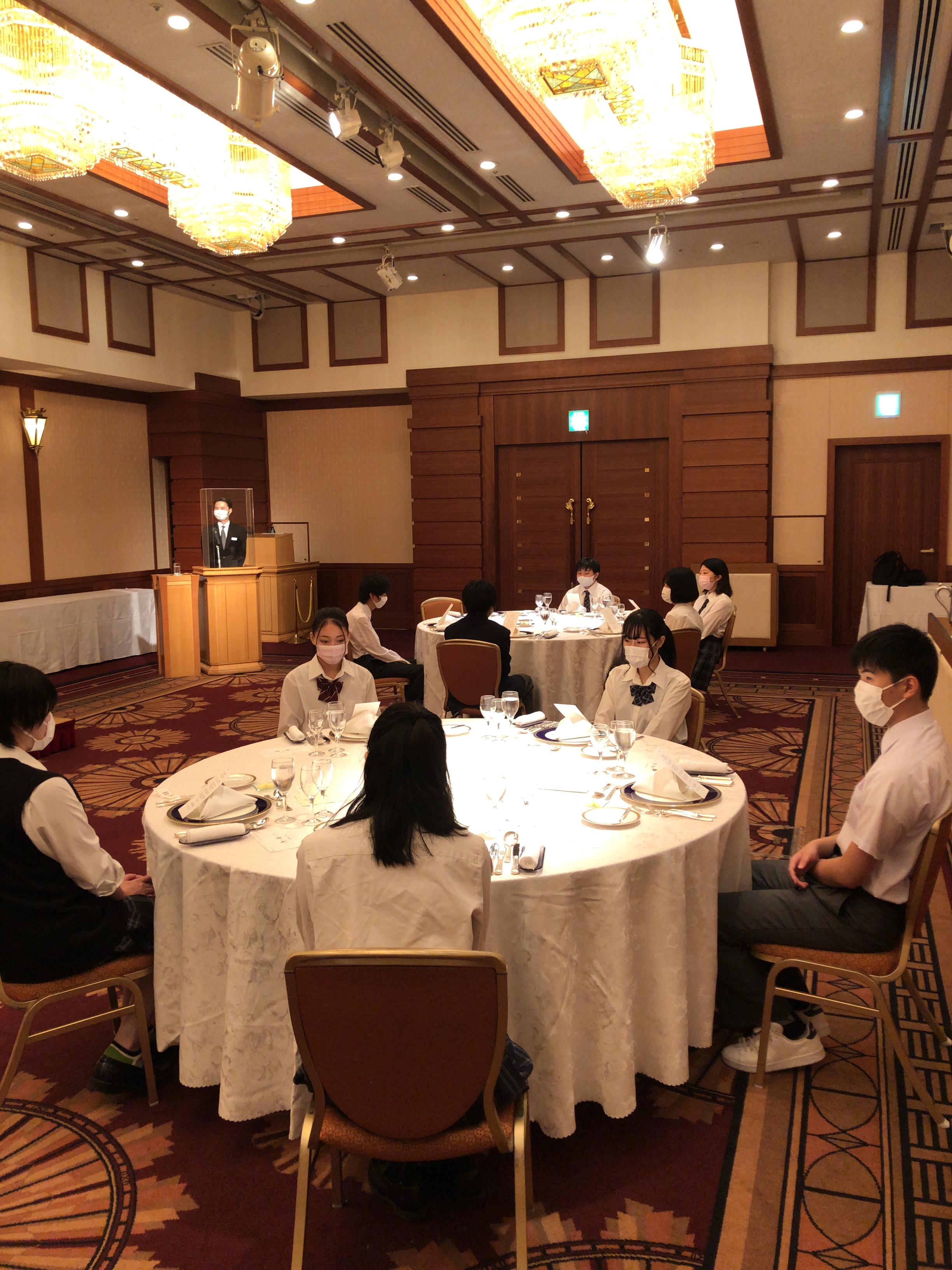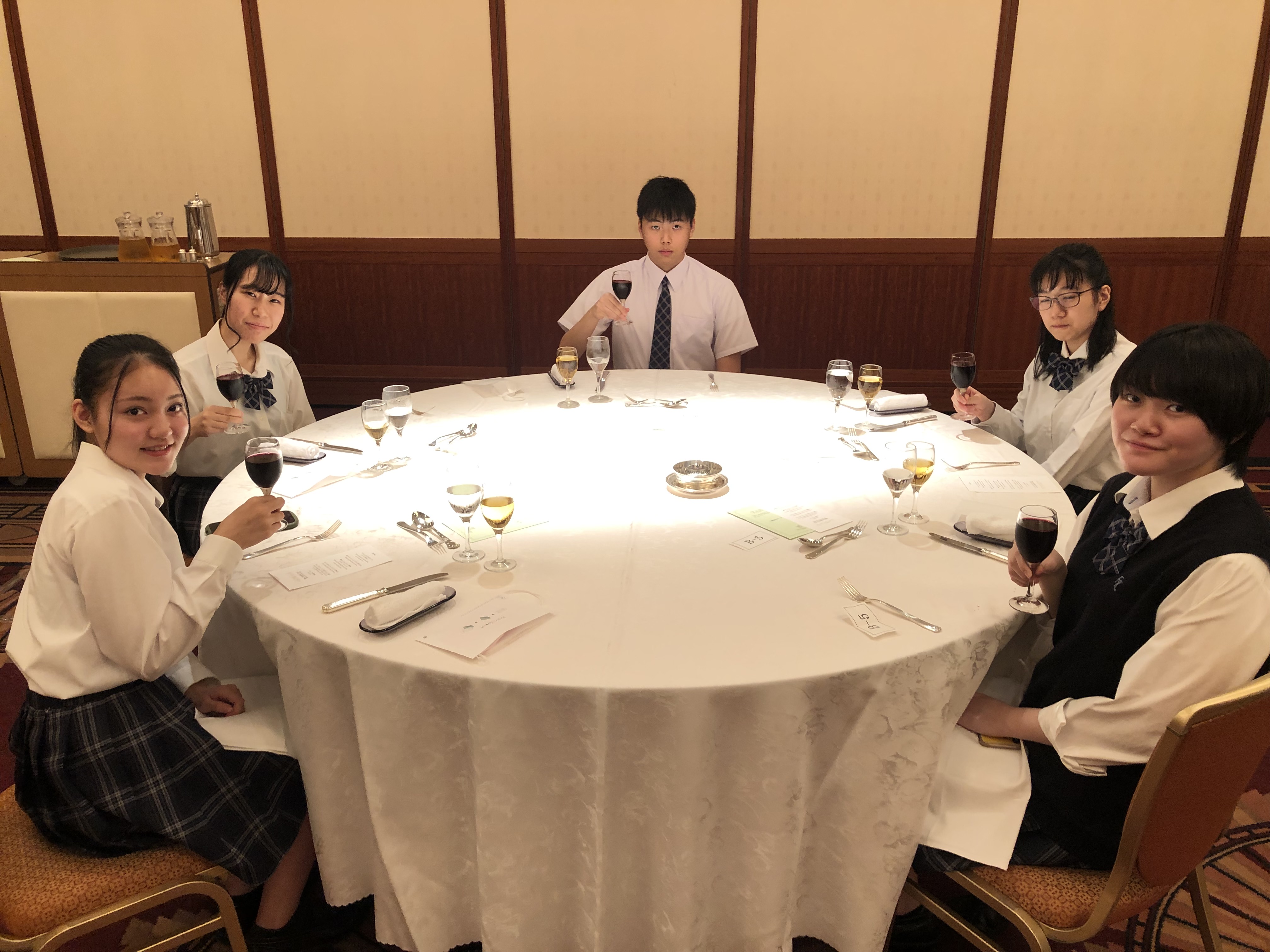 テーブルマナー講座では、程よい緊張感のなか、ホテルのスタッフの皆様によるテーブルマナーの説明、またコース料理を堪能。