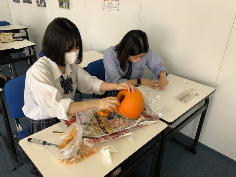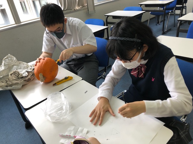 先日お伝えしたジャックオーランタン作り。