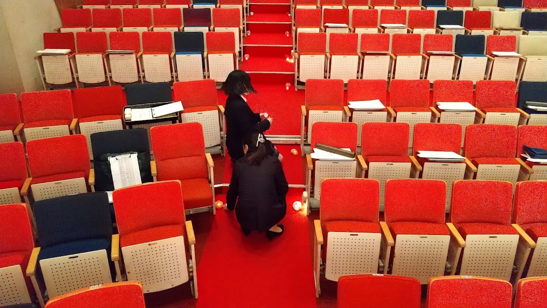 式当日は、在校生の実行委員・有志が集まり、事前準備に取り掛かります。