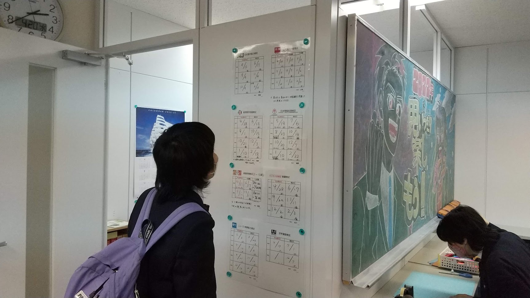 昨年度から掲示している検定一覧表。