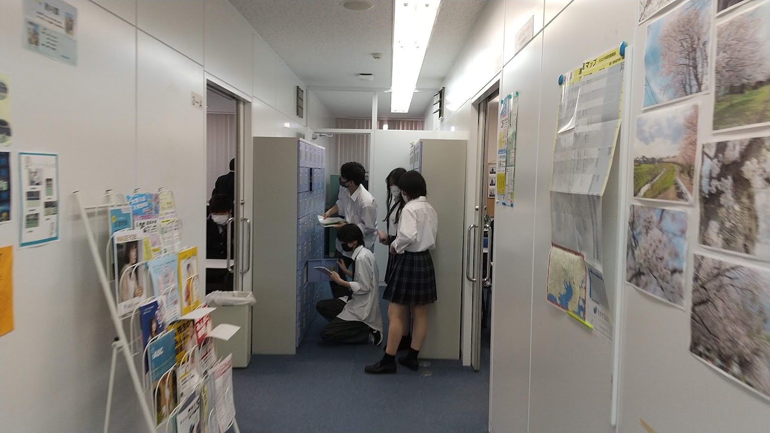 休み時間中に、廊下をウロウロしていると、ロッカー前に3年次生の姿が。
