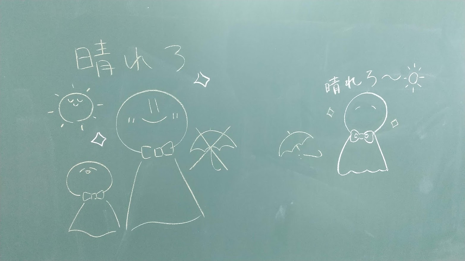 また放課後の1年次通学型の教室の黒板にも、かわいい絵が。