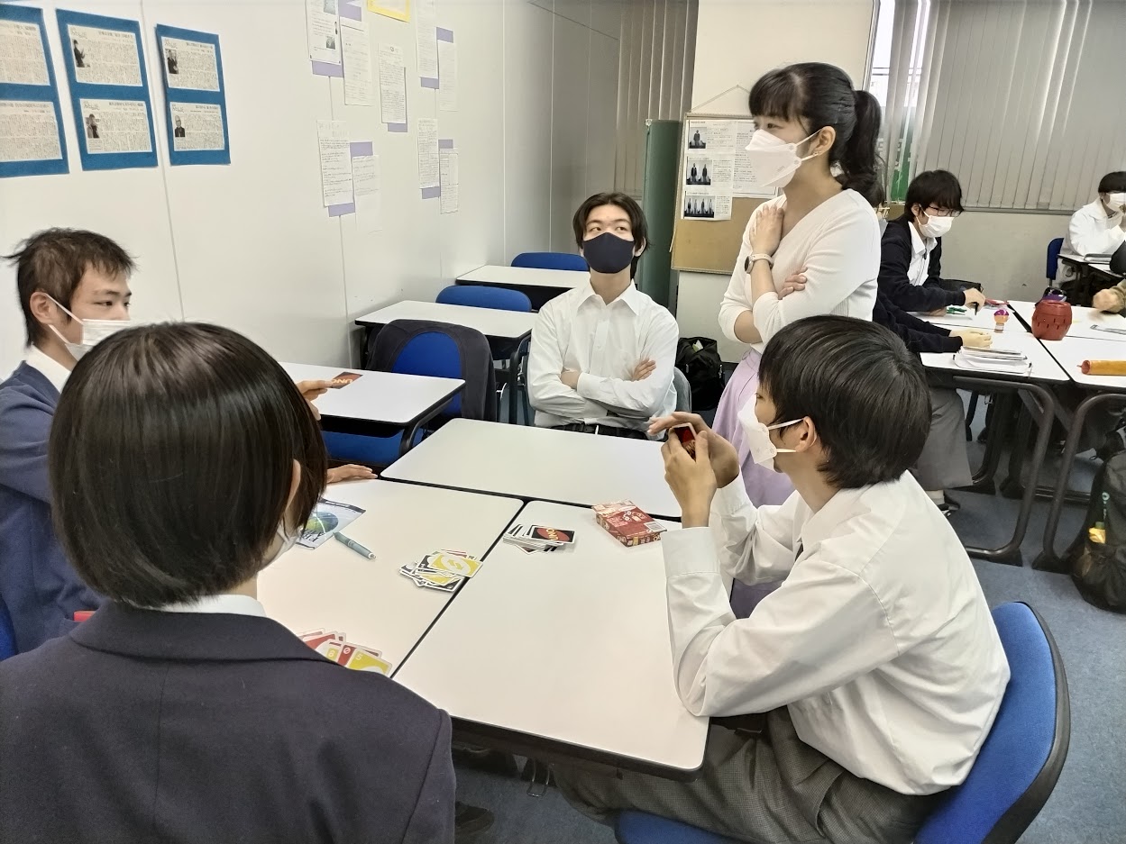2年次生の教室をのぞいてみると、またまたグループワークをしていました。