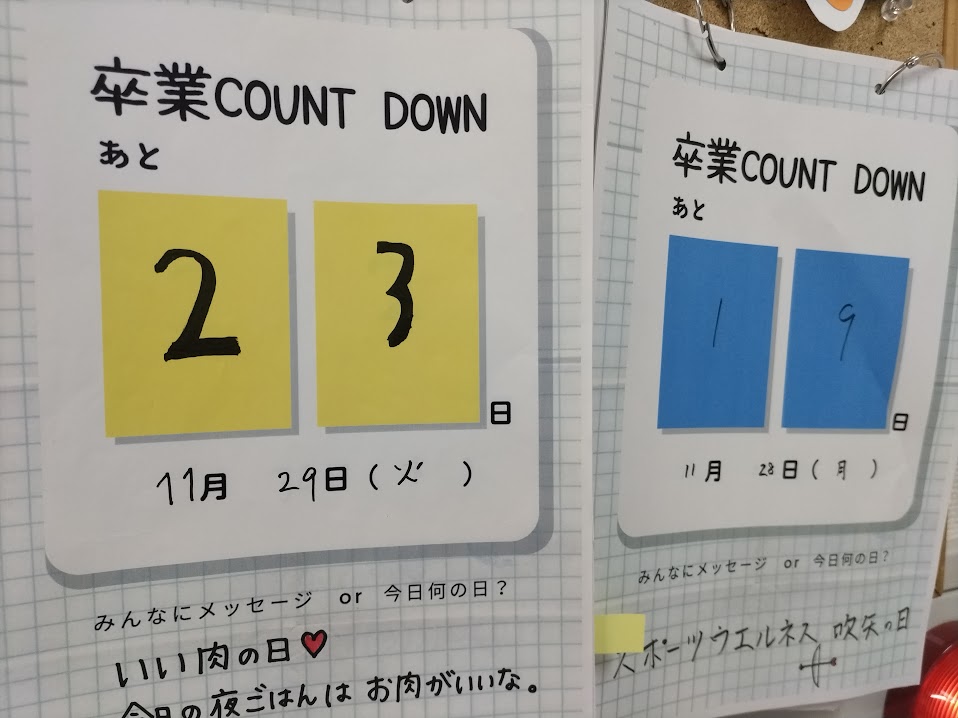 教室にあるカウントダウンも少なくなってきました。