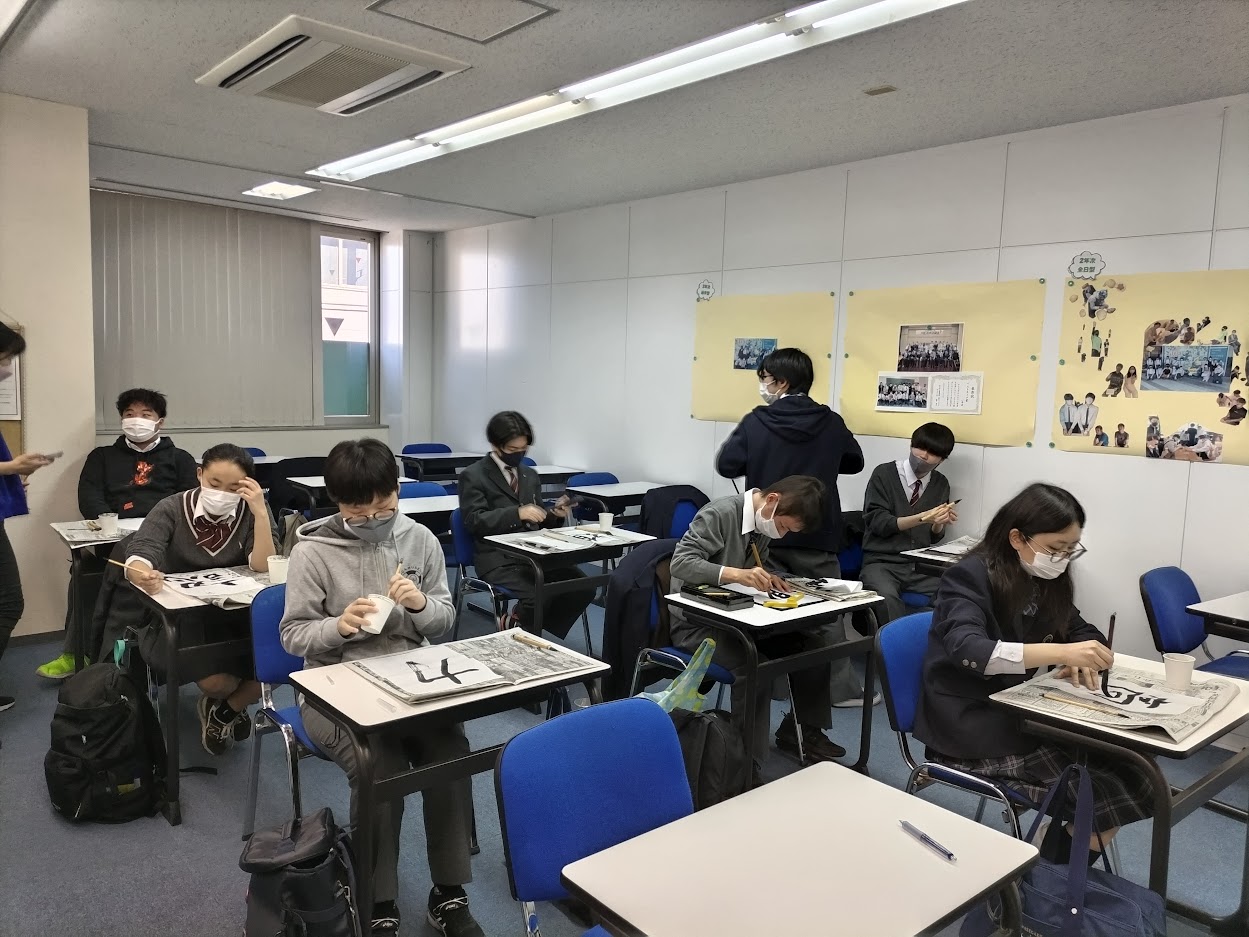 今日は、1,2年次全日型の生徒たちが書初めにチャレンジしていました。