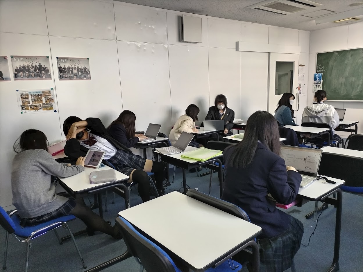 1,2年次の生徒たちも、「探究」の発表に向けて、授業で準備を進めています。