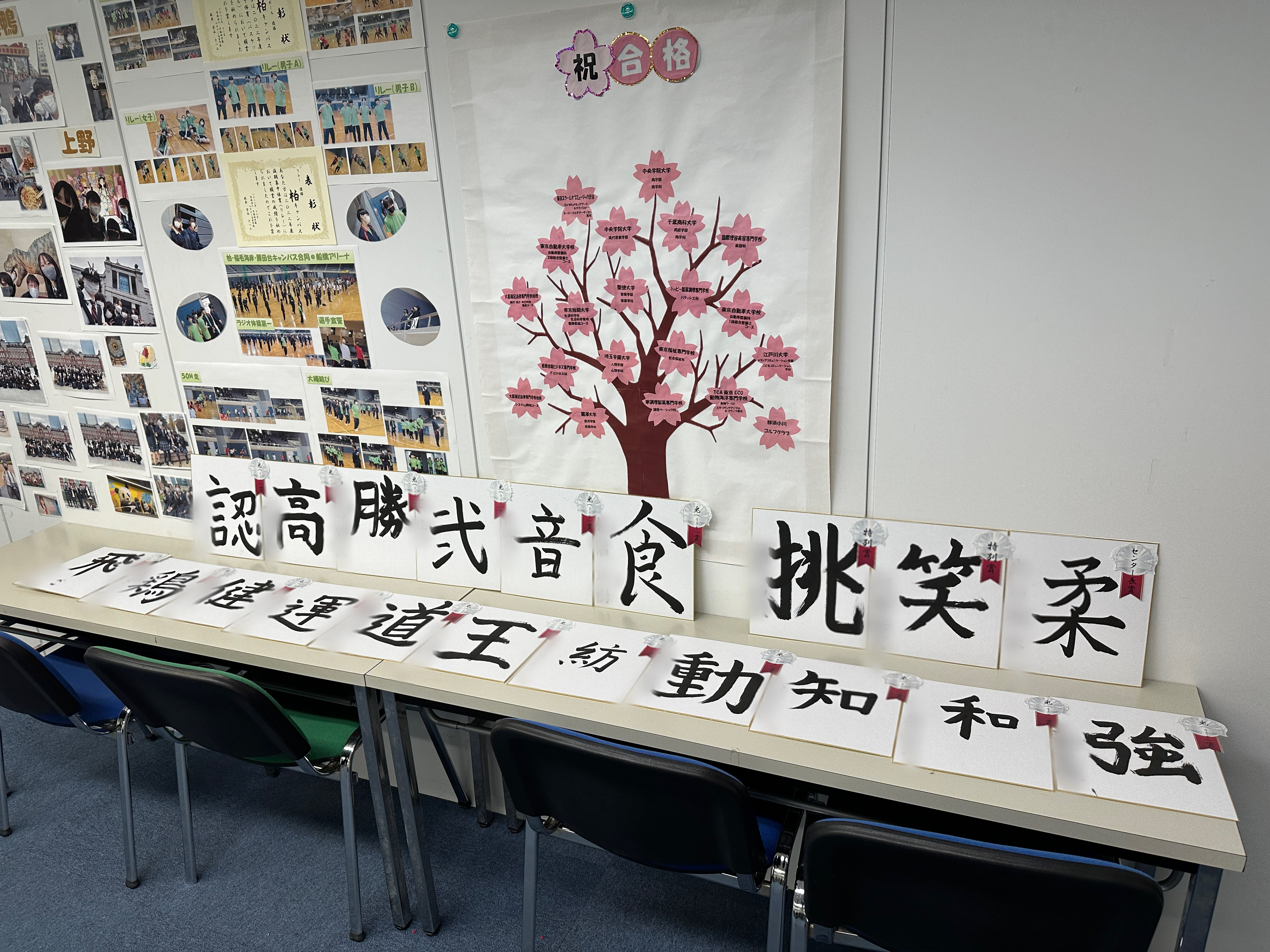 全学年全コースで実施した書初めの展示がスタートしました。