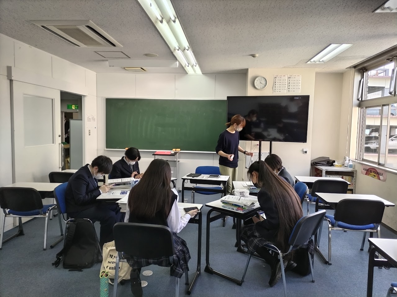 1年次は教科書を受け取ったり、レポートの実施方法を改めて確認したり。