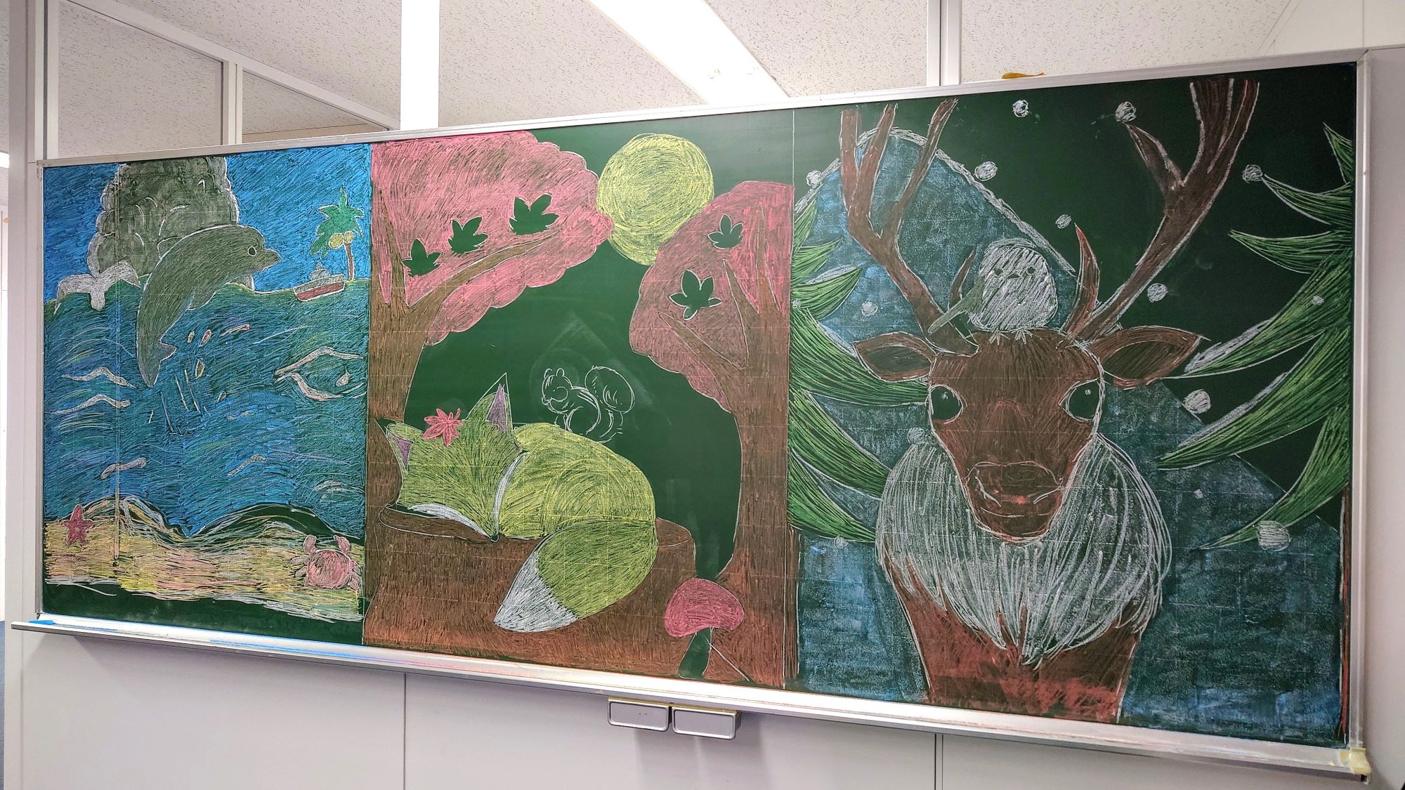 柏キャンパスの入口を入ってすぐ、黒板アートを