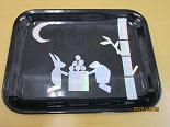 こんにちは。今回の選択芸術では螺鈿調トレー作りにチャレンジしました!