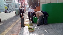 こちらの班は、校舎前のミニ花壇の雑草を取って花苗を植えました
