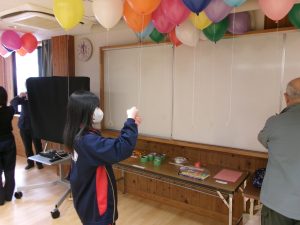 バルーンリリースやフォトスポット(巨大卒業証書)の準備のお手伝いを行いました。