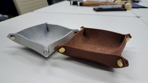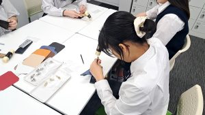 <芸術>は専門学校ヒコ・みづのジュエリーカレッジの講師の方による出張授業を行い、レザートレーを作りました!