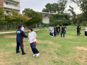 <体育>は大縄跳びをメインにキャッチボールやサッカーなどを楽しみました♪