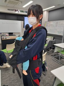 昨日は2年次家庭科の補習授業で「妊婦体験・保育体験」を行いました。