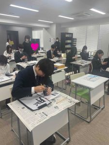 始講式では先生方の話を聞き、その後は恒例の書初めを行いました