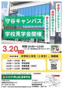 〇3/20(祝金)オープンキャンパス(中学2年生対象)10:00