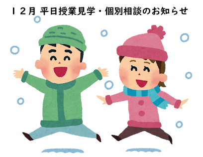 12日(金)以降は冬休みとなりますので、冬休み中は部活動の様子などを見学いただけます。