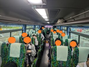 まずは、早朝6:50にバスは出発です。朝起きるのが苦手な生徒もこの日は頑張って遅刻せずでした。