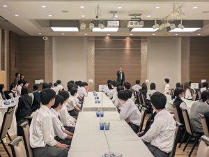 最後に、ホテル食堂にて開校式。校長先生からのお言葉も頂き、改めて一致団結しました。