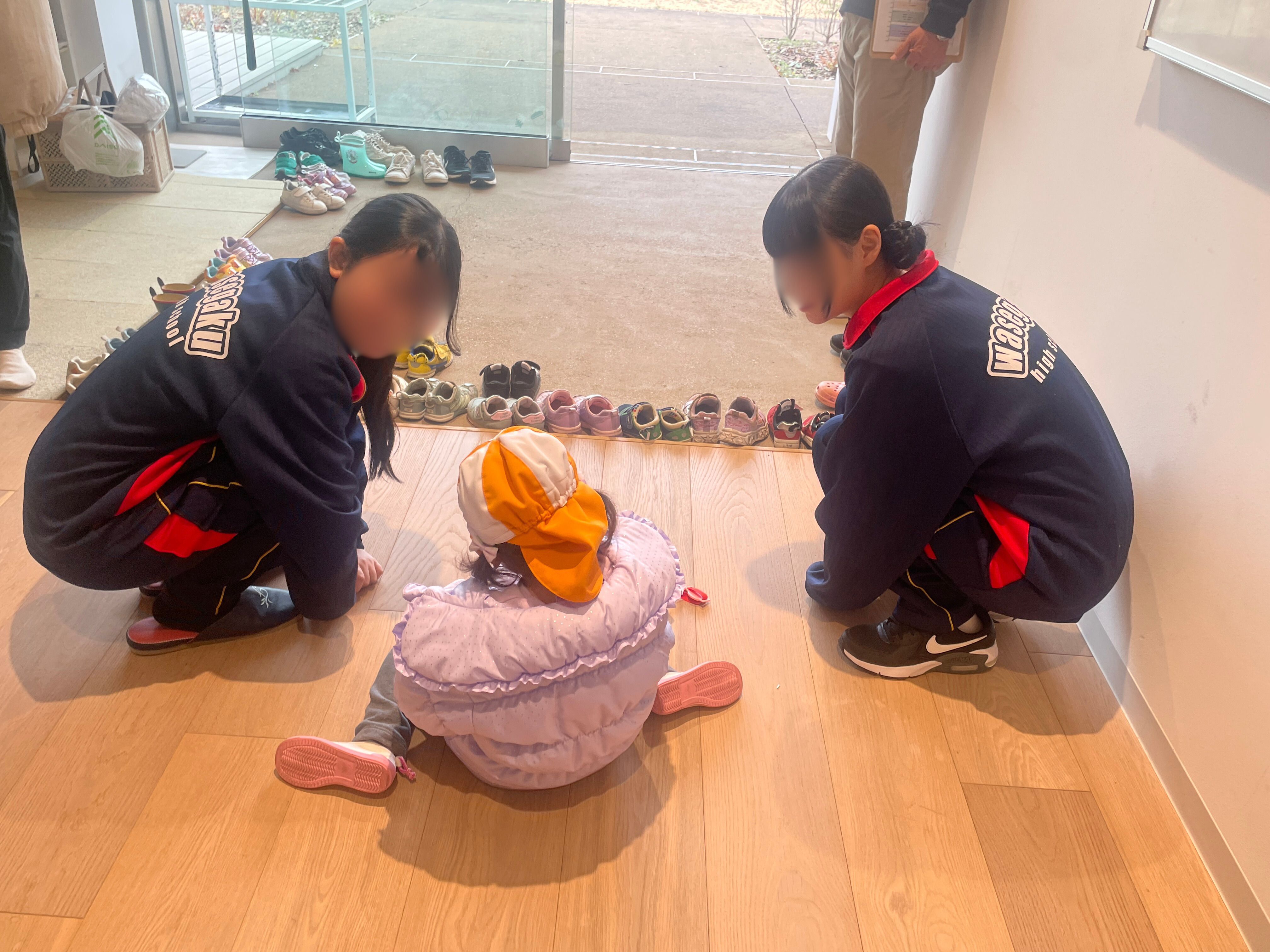天真爛漫な幼児に、思わず「かわいい」と声がこぼれてしまう生徒たち。