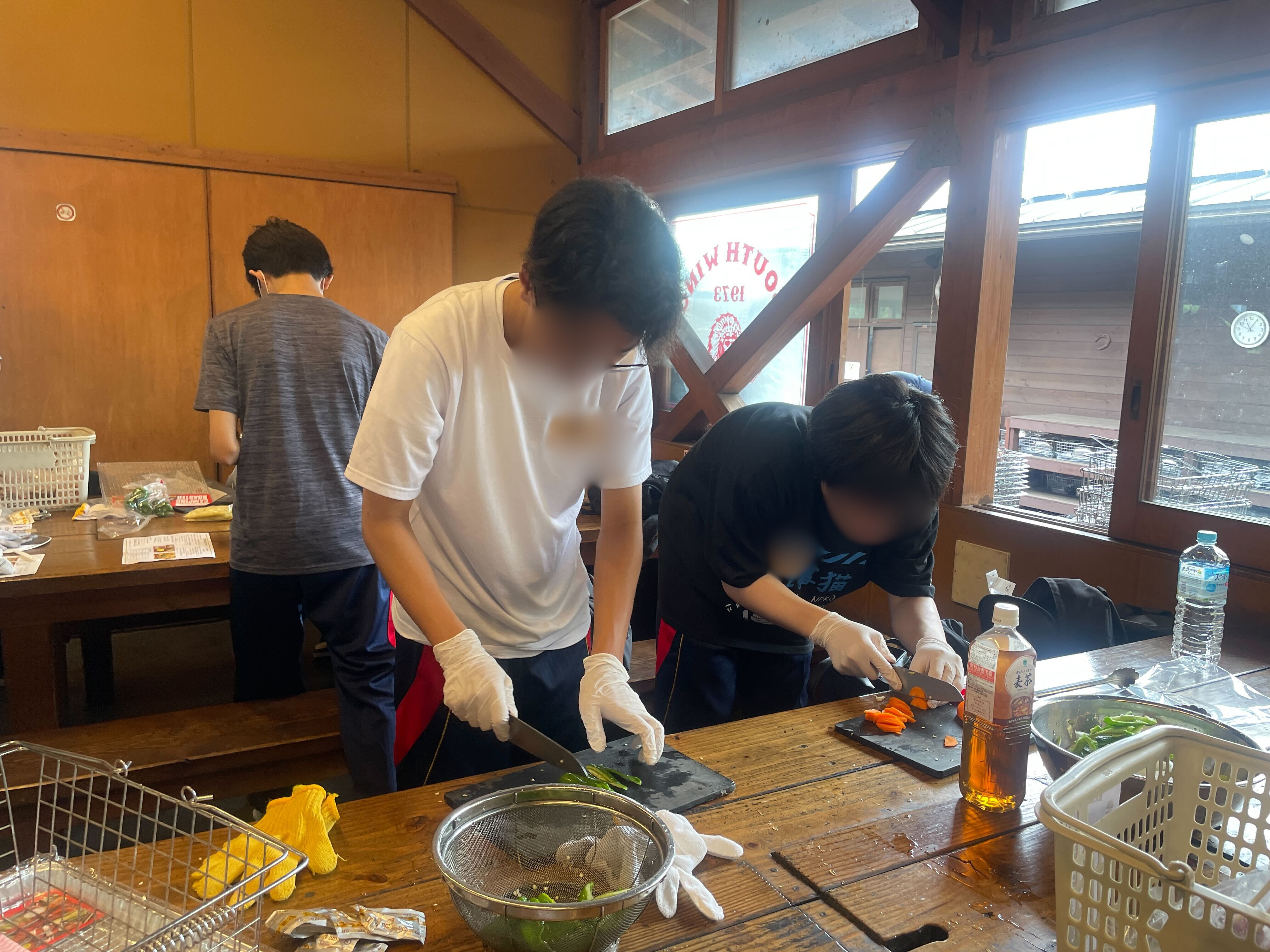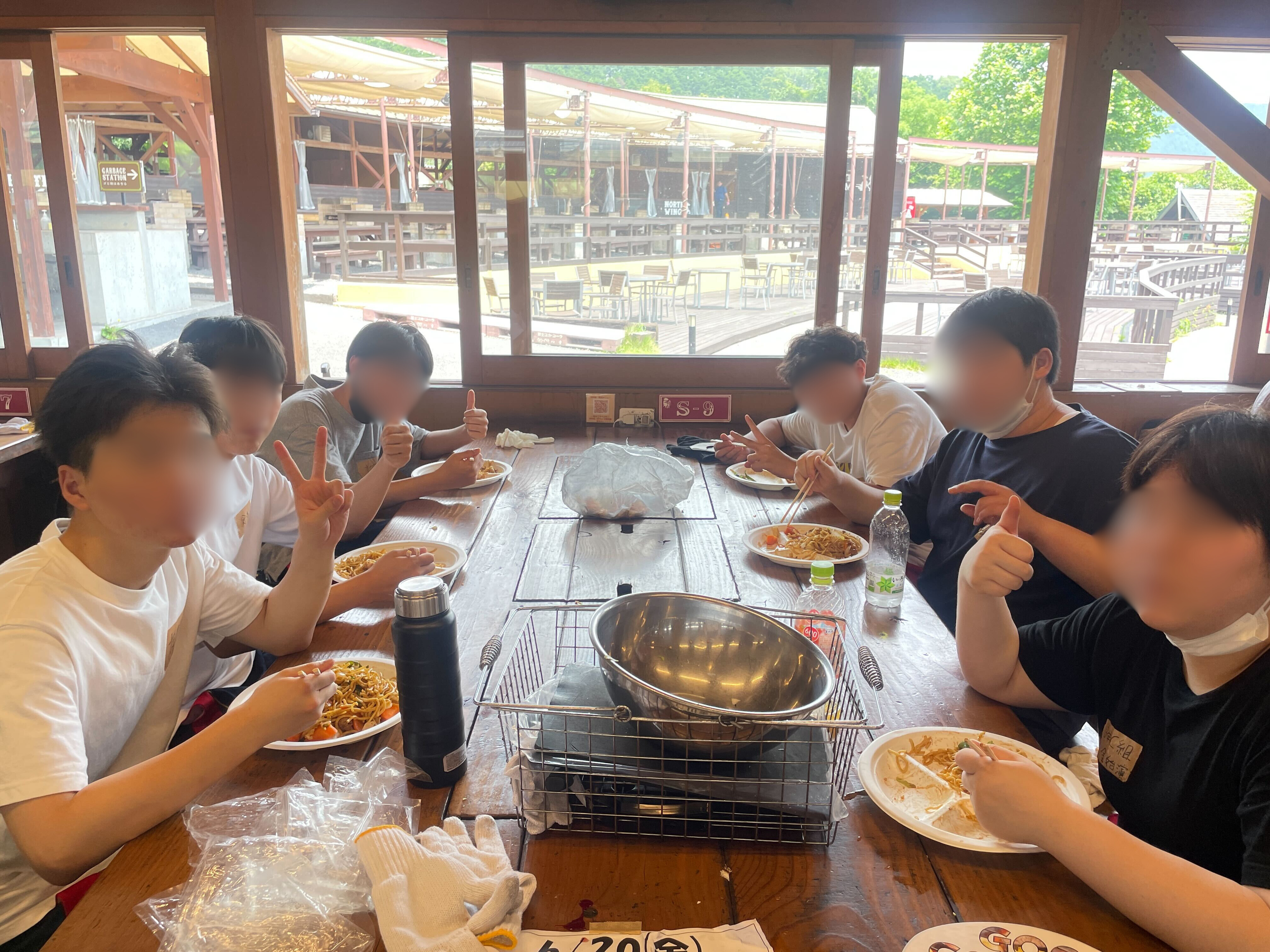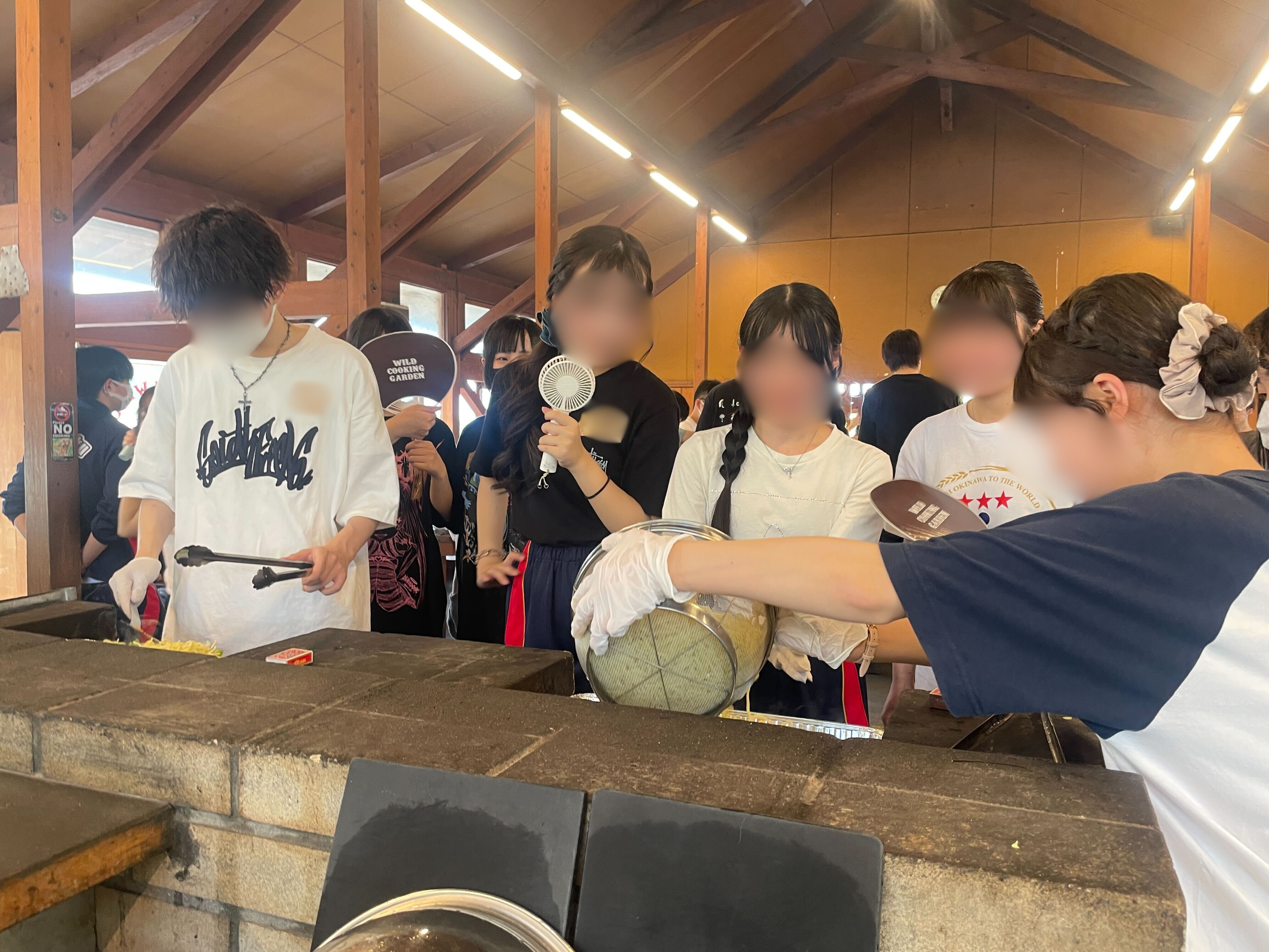焼きそばを作ったり、串に刺さったお肉を焼いたりと、どの班も力を合わせて調理を楽しんでいました。