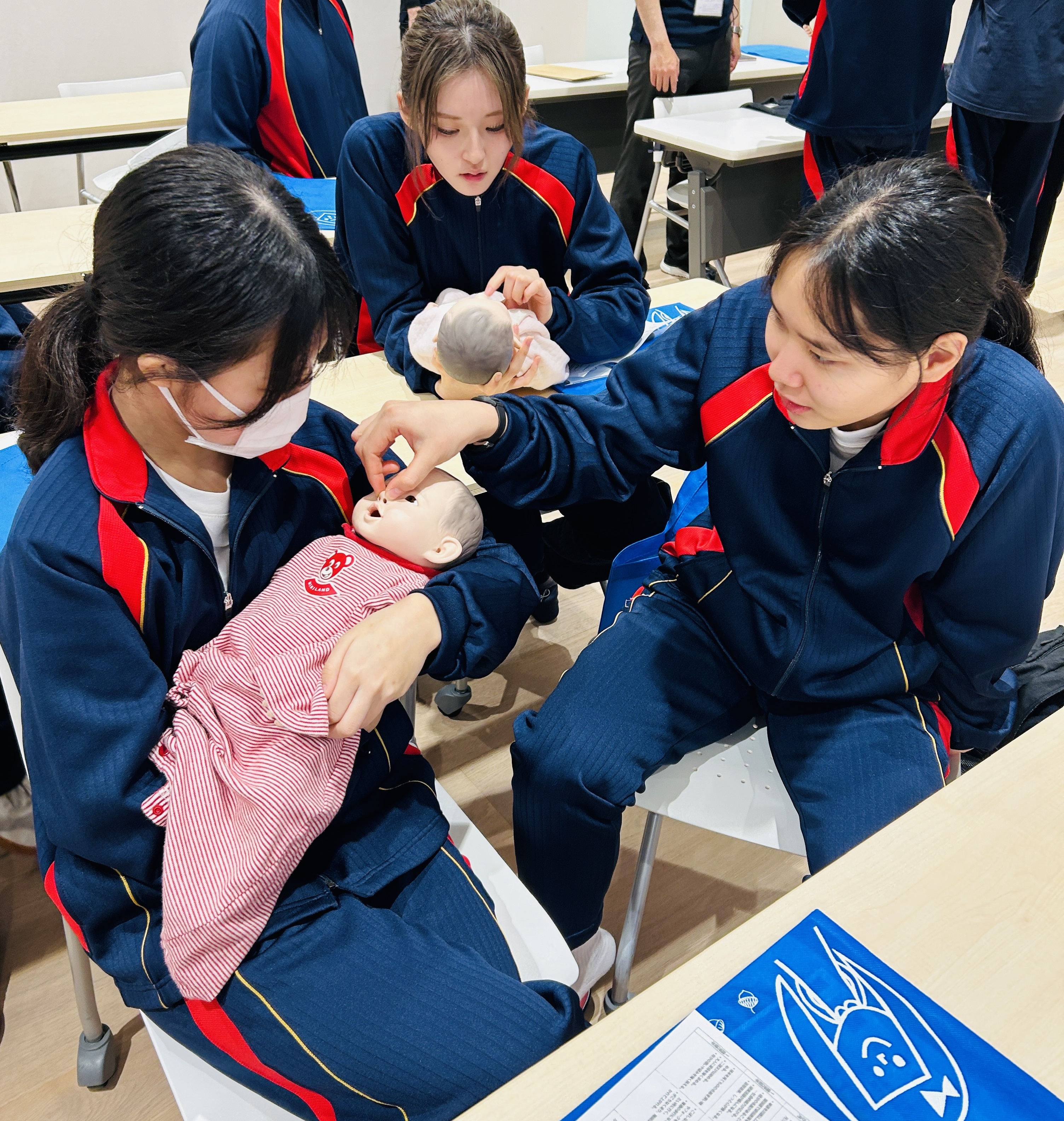 幼い子どもと触れ合う機会が初めてという生徒が多かったのですが、無邪気な子ども達と身体を使って遊ぶことで自然と子ども達の目線に合わせて接することができていました。