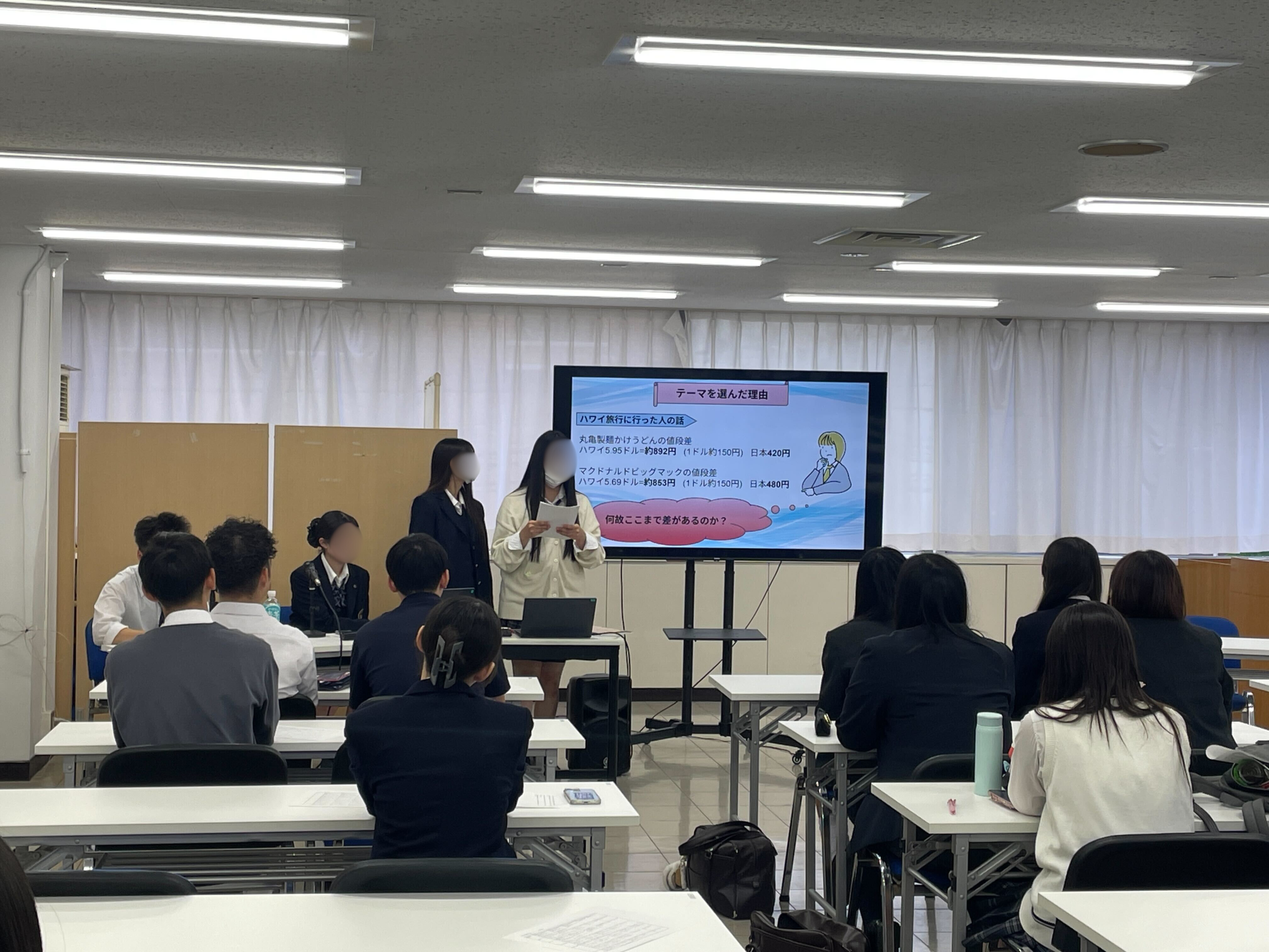 生徒たちは、自分たちで調べたことをスライドにまとめ、わかりやすくプレゼンテーションしました。