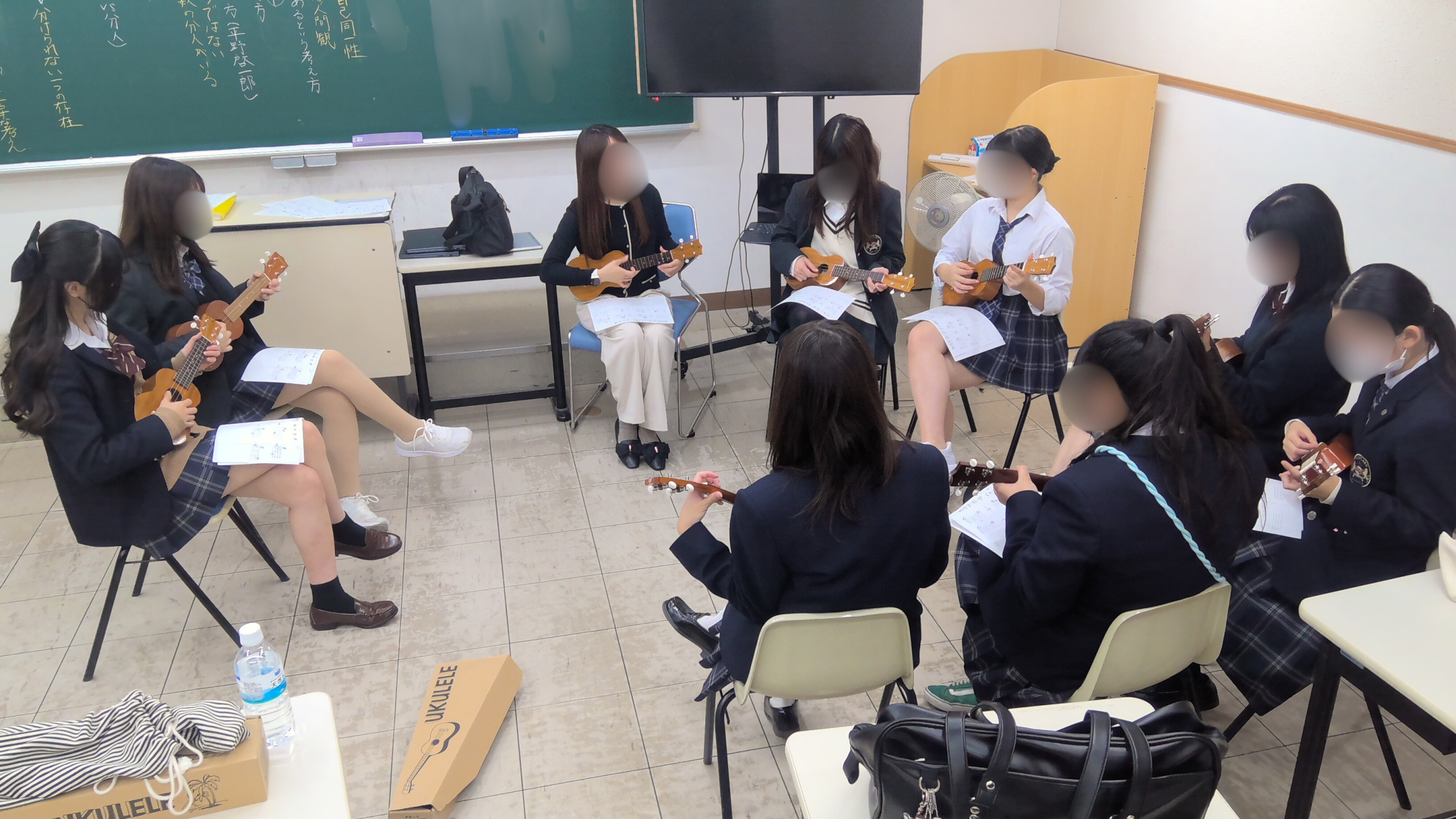 芸術ではウクレレに集中して取り組む姿があり、夢育では資格取得に向けた学習を落ち着いて進める生徒たちの姿がありました。